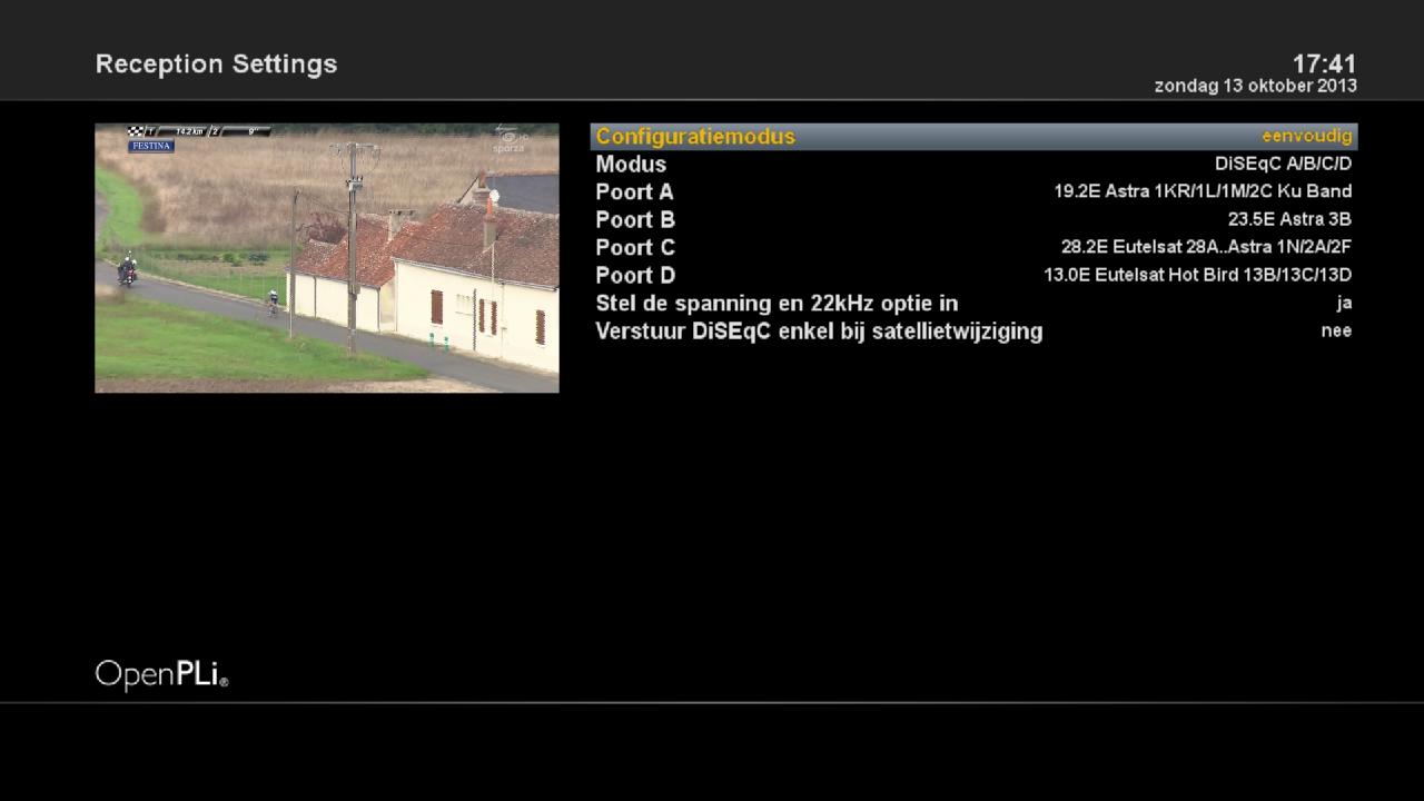 marco24 Geplaatst: 11 februari 2014 Geplaatst: 11 februari 2014 hier al een tijdje in het bezit van een max digital xp1000 werkt op zich prima met open pli echter zijn er een paar instelproblemen waar ik tegen aan loop de tuner configuratie: configuratie modus op eenvoudig gaat prima (dan heb ik astra 1 en 3) echter heb ik ook een 3e sat positie op 28.5 graden en kan ik met eenvoudige configuratie niet meer uit de voeten. configuratiemodus geavanceerd: daar kom ik niet uit, wat een instellingen. op de ariva 102 mini en mijn oude dreambox 7020 se is het simpel in te stellen (gewoon poort 1 aan astra 1 , poort 2 aan astra 3, poort 3 aan de 28.5 graden toewijzen. echter in open pli zitten veer meer instellingen waar kan ik meer instellingen vinden, of wie heeft tips met vr gr marco