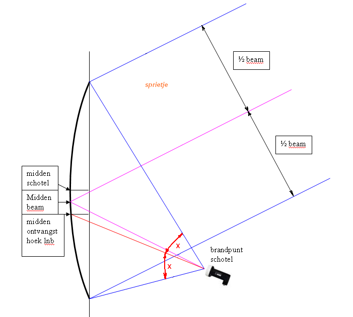 bcw Geplaatst: 5 maart 2014 Geplaatst: 5 maart 2014 Trust, Gemeten vanuit het brandpunt zou die hoek 38 graden moeten zijn. (In bovenstaand plaatje: (PhiB - PhiL)/2 ) Heb je de plaats waar het draaipunt zit al eens gecontroleerd met de afstand tot boven, onder en zijkant van de schotel?