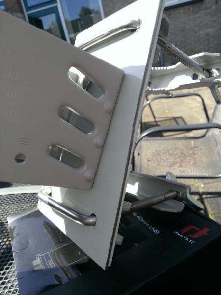 RKrijnen Geplaatst: 26 mei 2014 Geplaatst: 26 mei 2014 Afgezien van de prijs, vond ik het aanpassen van mijn schotel ook wel mee vallen ( het uitrichten viel niet mee, maar dat lag ergens anders aan ) , uiteindelijk toen ik Astra 3 had was het ook zo voor mekaar. Er is een Technisat variant, kant en klaar getest of het forum, is ook een alternatief. Ik heb deze aanpassing gemaakt om de hele schotel 10 graden te kantelen, omdat de rail niet gekanteld kan worden. Fuba Daa850 met multifeed , Vu+duo 4k se met dvb s en dvb c. Vti 15