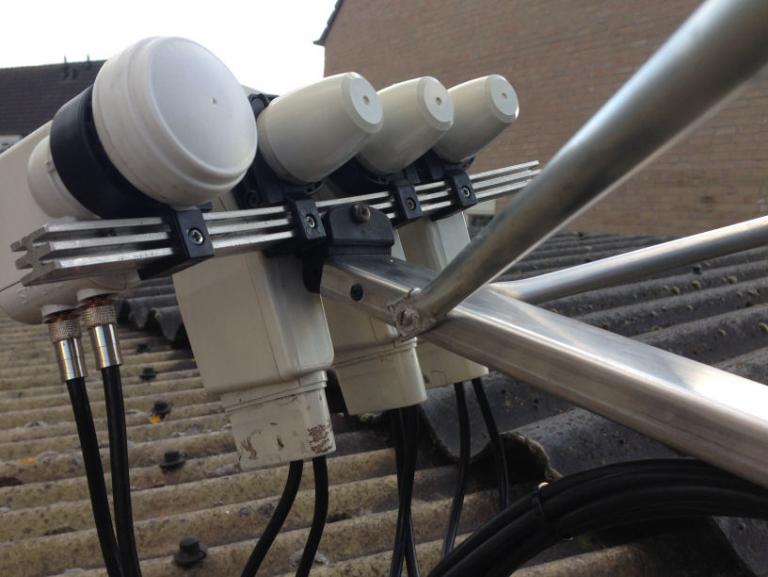 Sprietje Geplaatst: 14 mei 2015 Geplaatst: 14 mei 2015 Bests Cobus RVoor een Triax 88 in Duiven heb ik het volgende voor je uitgerekend:Plaats de rail zodat het gat in de onderste groef zit.Plaats de lnb's zodat de koppen 5-6mm van de klemmen af staan.Monteer de houder met lnb voor de Astra 19,2 op 3mm van de arm.Zet de lnb's van de Astra 19,2, de 23,5 en 28,2 met de koppen tegen elkaar.Plaats de lnb voor de Hotbird 13 op 78mm van de Astra 19,2-lnb, d.w.z. gemeten aan de voorzijde van kuiltje tot kuiltje.Stel de rail 9,65 graden schuin, d.w.z. de kop van de Hotbird 13 moet 32mm lager staan dan de kop van de Astra 28,2. Dit kun je meten met een waterpas en een rolmaat.Stel de skew van de lnb's als volgt in:Hotbird 13 op 5 gradenAstra 19,2 op 3 gradenAstra 23,5 op 6 gradenAstra 28,2 op 10 gradend.w.z. met de wijzers van de klok meegedraaid als je naar de binnenzijde van de schotel kijkt t.o.v. verticaal, niet t.o.v. de rail.Stel de elevatie van de schotel in op 29 graden op de Astra 23,5 te vinden. Richt de schotel daar op uit zodat je maximale signaalkwalteit hebt. Doe dit met uiterste precisie want dit bepaald ook de kwaliteit van de andere satellieten. Niet uitrichten op de Astra 19,2 want die lnb staat er 3mm naast.
