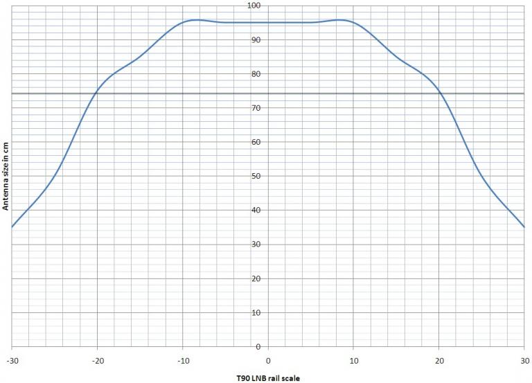 Sprietje Geplaatst: 5 oktober 2014 Geplaatst: 5 oktober 2014 (aangepast) Een T90 die zijn signaal ontvangt op 23 strepen uit het midden, gedraagt zich nog maar als een 60cm-schotel, zie de bijlage. 5 oktober 2014 aangepast door Sprietje