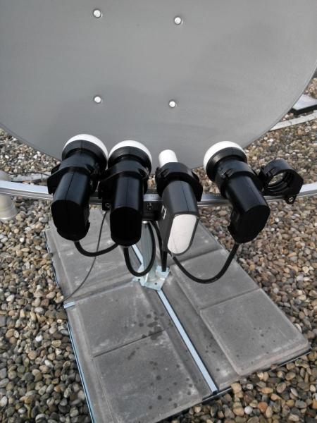 Zoals je ziet kunnen er niet overal normale lnb's met koppen van 60mm gemonteerd worden. Om de lnb's op hun ideale plaats te laten staan, zou het het beste zijn om voor de Astra 23,5 een ALPS-lnb te nemen. Dan kun je voor de overige satellieten gewone lnb's gebruiken die precies op hun plaats staan.