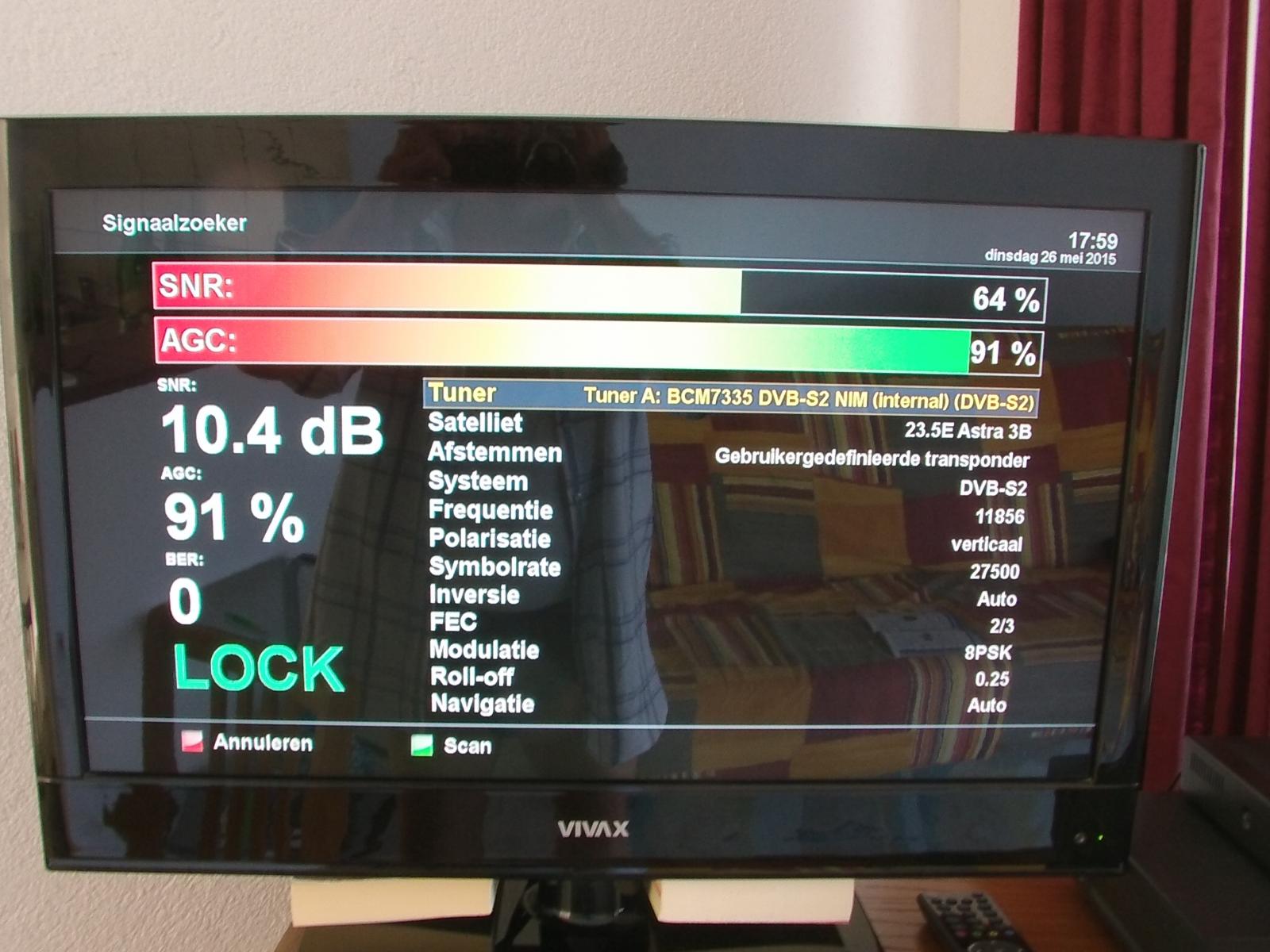 Sprietje Geplaatst: 27 mei 2015 Geplaatst: 27 mei 2015 Je krijgt het beste signaal als je de duo-lnb zo ver mogelijk naar de schotel zet.