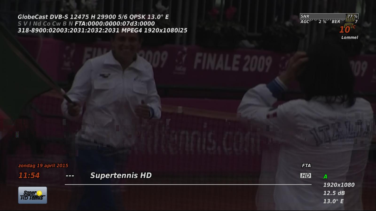 Sprietje Geplaatst: 19 april 2015 Geplaatst: 19 april 2015 (aangepast) De zender Super Tennis zit op positie 535 van de fastscanlijst en is gewoon prima te ontvangen op 12475H. Maar let op de transpondergegevens zijn als volgt: BVB-S2, 8PSK, SR 29900, fec 3/4.Waarschijnlijk heb je de Symbol Rate (SR) niet goed staan. Die is 26 maart veranderd. 19 april 2015 aangepast door Sprietje