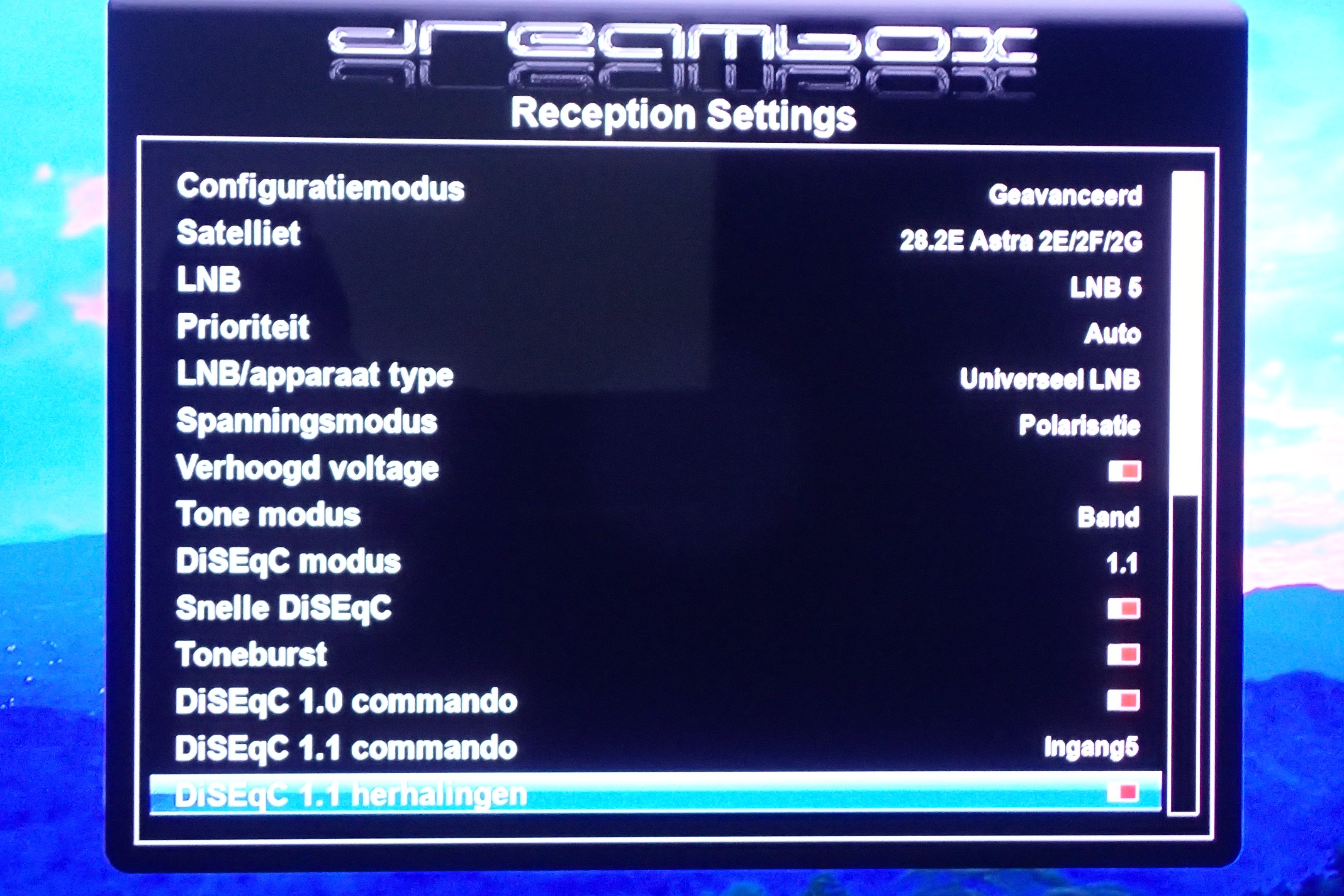 waarden voor de sat-ontvanger om schotel goed uit te richten