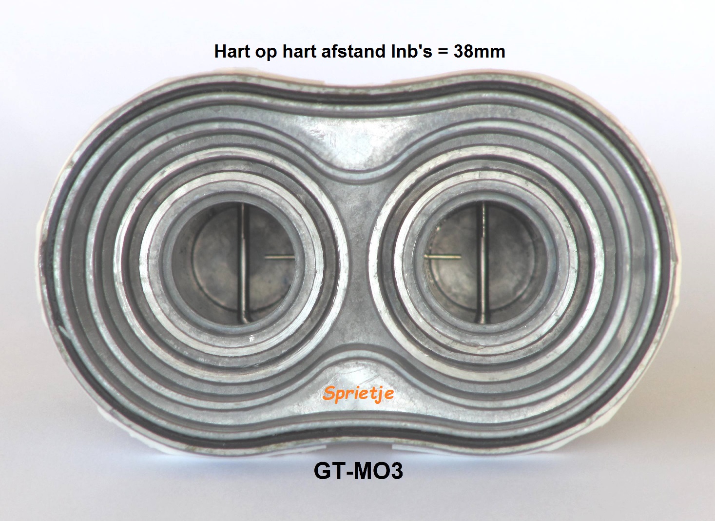 Sprietje Geplaatst: 29 april 2017 Geplaatst: 29 april 2017 Beste RoyNLWelkom op dit forumDe GT-MO3 is een 3 graden block voor een schotel van 80cm. Wat de afstand van de koppen betreft kan dit monoblock ook voor de ontvangst op een schotel gebruikt worden voor een satellietafstand van 4,3 graden.Alleen is het wel zo dat de stand van de antennes niet aan is gepast aan de aangepaste kruispolarisatie van de drie Astra satellieten.Dit wil niet zeggen dat dit block niet op een schotel van 60cm te gebruiken is echter je zult een beetje signaalkwaliteit moeten inleveren t.o.v. een 4,3 graden duo-lnb waar de antennes wel in de juiste stand staan.Als je dit block gebruikt voor de ontvangst van de Astra 19,2 en 23,5, dan moet je in het menu diseqc 1.0 instellen waarbij Astra 19,2 oppositie 1 en Astra 23,5 op positie 2.Bij welke plaats ligt de camping waar je nu staat?Heb je het block gemonteerd zoals op de bijlage, dus met de kop van de Astra 23,5 in de klem en de kop van de Astra 19,2 iets lager?