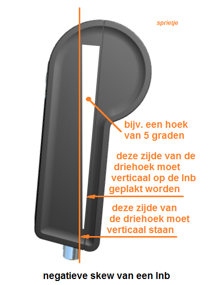 Probleem is dat ik niet weet hoe ik de skew van de links moet instellen t.o.v van de schotel. De rail staat al in de juiste stand en ik kan de graden streepjes niet gebruiken op de lnb's.