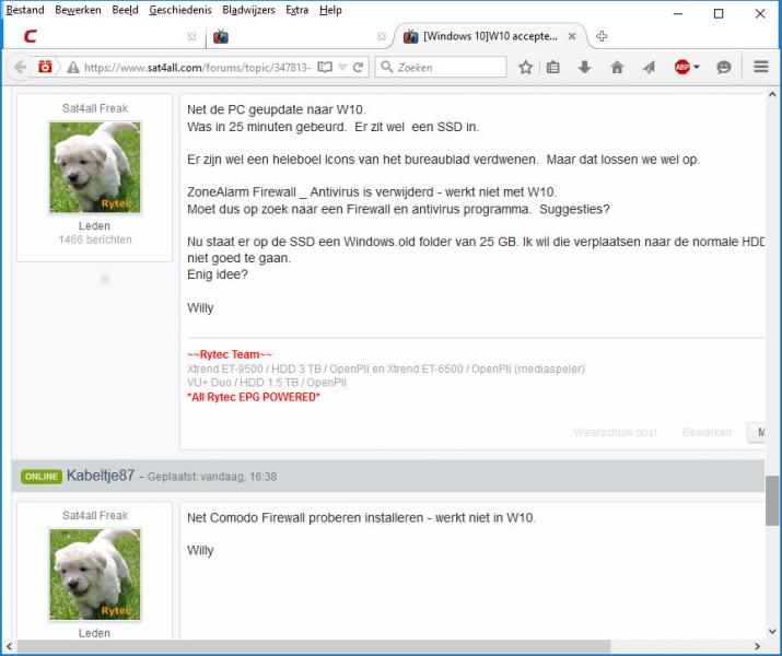 Net Comodo Firewall proberen installeren - werkt niet in W10.