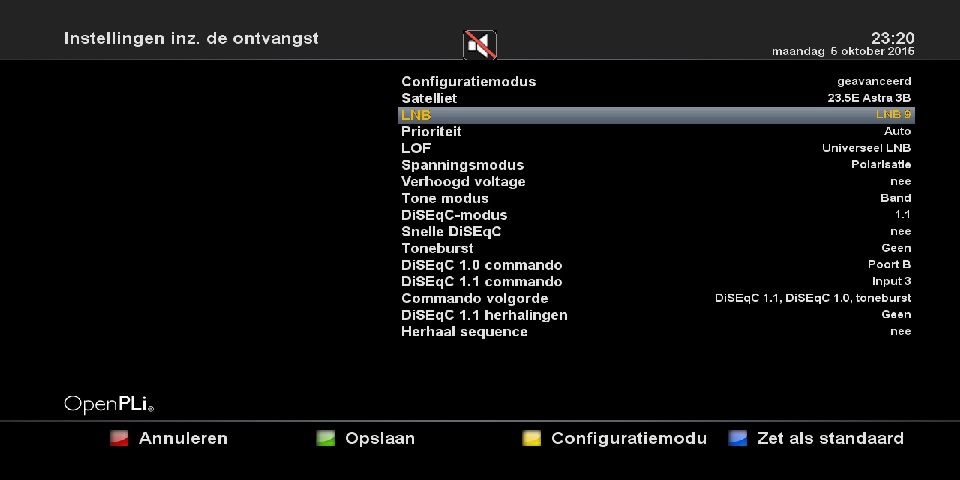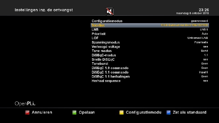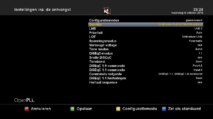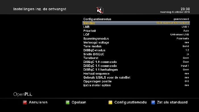 draaibaar (actuator + vboxII) + vast (19,2E en 23,5E) switches + instellingen E2