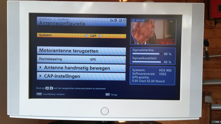Daar stopt hij dan en dan zet ik de schotel aan en zoekt prima de satteliet op.