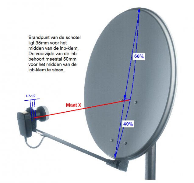 Sprietje Geplaatst: 12 juni 2016 Geplaatst: 12 juni 2016 Zou je even uit kunnen leggen welke schotel je precies hebt?Een SAB 110 bestaat niet.Wel een SAB S97 van 87cm breed en 97cm hoog en een SAB S120 van 105cm breed en 117cm hoog.Zou je "maat X" even op willen geven, zie bijlage.