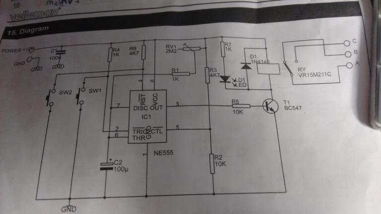 Als je weer naar de schakeling van @katwezel teruggaat, is het wellicht handiger om aan het lampje te zien of de timer AANgeschakeld is?