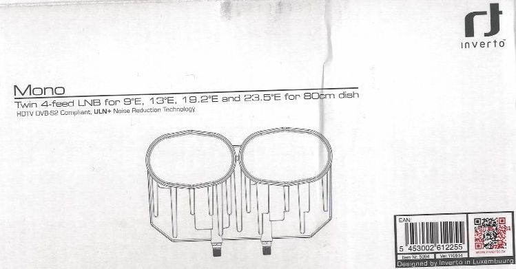 TozdeoG Geplaatst: 9 februari 2016 Geplaatst: 9 februari 2016 (aangepast) Heeft er iemand ervaring met deze voor mij nieuwe LNB? (9E, 13E, 19.2E & 23.5E op een 80cm schotel) Kan men deze voldoende schuin monteren ? Is er hier bij ons ontvangst van 9°E met deze LNB ? Deze LNB zit in een M7 doos maar is misschien ontworpen voor de Hongaarse markt waar M7 ook actief is. Men gebruikt deze nu bij Télésat klanten met een abonnement optie voor de Vlaamse zenders op Astra3. 9 februari 2016 aangepast door TozdeoG