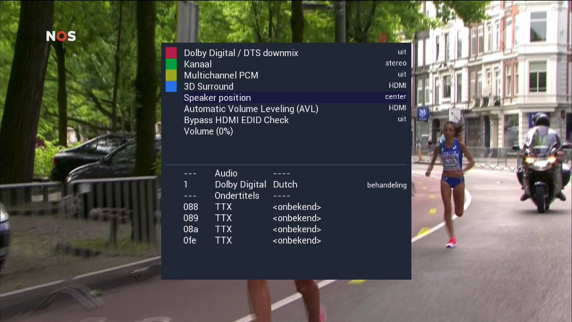 Staat dit op uit, op een Dolby Digitaal zender, kan je het geluid niet veranderen met je ontvanger ab