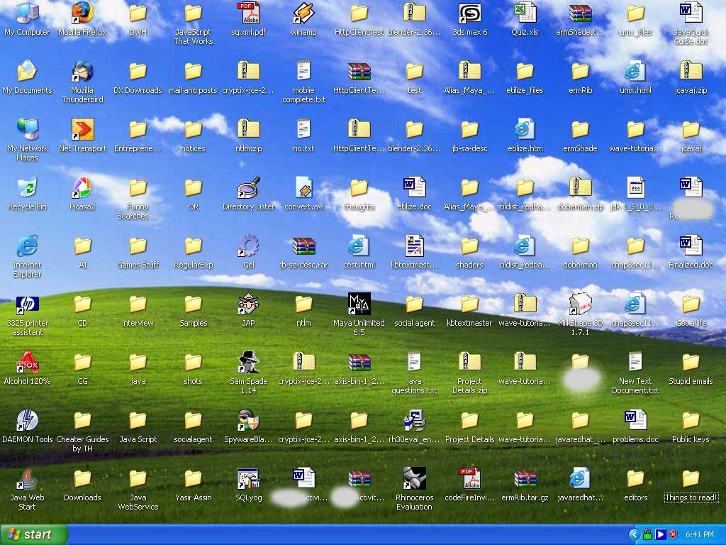 Grappig, zo ziet mijn bureaublad eruit! Ik beschouw het als een echt bureau. Ik gooi er vanalles op en af en toe moet je opruimen.