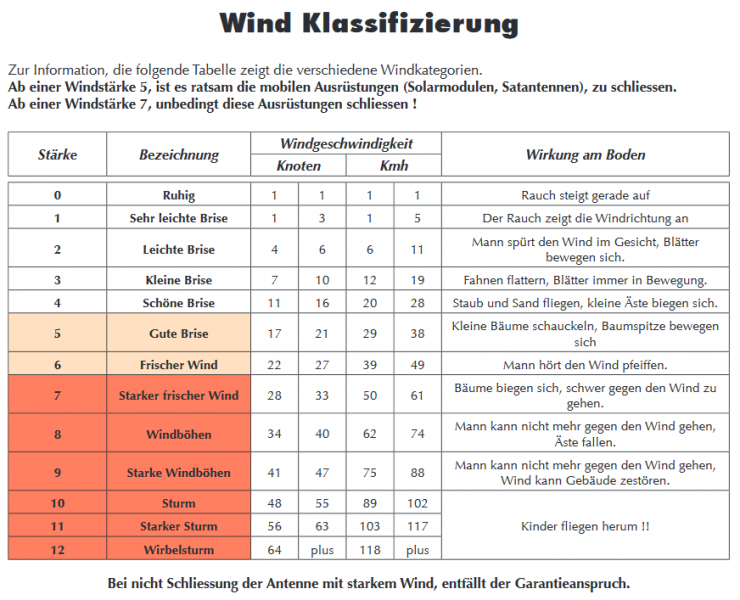 Ondanks de windgaten wordt al aanbevolen vanaf windkracht 5 de schotel neer te klappen, zie bijlage.