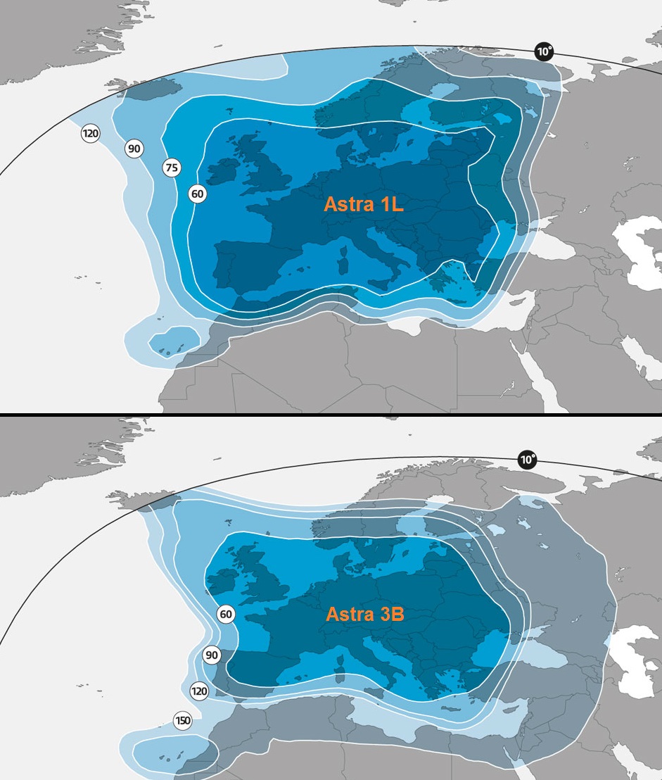 Sprietje Geplaatst: 21 juni 2016 Geplaatst: 21 juni 2016 Het uitzendvermogen van de Eurostar E3000 satellieten die SES Astra gebruikt is gelijk maar zoals je ziet loopt de footprint van de Astra 3B veel verder naar het oosten.