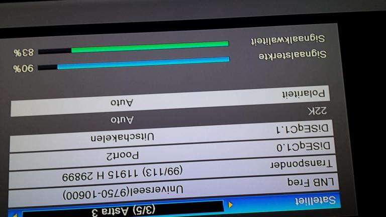 meg96 Geplaatst: 4 juli 2016 Auteur Geplaatst: 4 juli 2016 (aangepast) Nu kun je de volgende gegevens zien voor Astra 23.5 : - LNB type : Universeel - TP index : 18) 11914 H 27500 - DiSEqC 1.0 : 1/2 bijvoorbeeld - DiSEqC 1.1 : Uitschakelen - Positioner : Uit - 22K : Uit - 0/12 V : Aan - Polariteit : Auto - LNB spanning : Aan Met "DiSEqC 1.0 : 1/2" is er wel signaal (volgens de balken) maar geen beeld (ik gebruik TV Oost als test-kanaal). En met "DiSEqC 1.0 : 2/2" is er helemaal geen signaal. Wat moet ik doen ? 4 juli 2016 aangepast door meg96