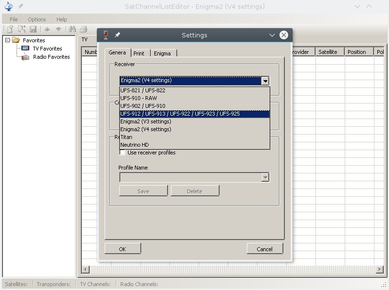 DeltaFM Geplaatst: 7 juli 2016 Geplaatst: 7 juli 2016 (aangepast) Dat is toch wel weer anders dan wat je krijgt met SatChannelListEditor ingesteld op de latere Kathrein types... Om je een voorbeeld te geven NPO 3HD: <Service> <ChannelNo>3</ChannelNo> <Name>NPO3 HD</Name> <Sid>21040</Sid> <Tsid>3225</Tsid> <Onid>3</Onid> <Carrier> <Longitude>235</Longitude> <Band>Ku</Band> <Frequency>12187</Frequency> <SymbolRate>29900</SymbolRate> <Pol>H</Pol> <FEC>DVBS2 8PSK 2/3</FEC> </Carrier> <Vpid>518</Vpid> <Apid>106</Apid> <PCRpid>518</PCRpid> <Scrambled>false</Scrambled> <Skipped>false</Skipped> <Locked>false</Locked> <ServiceType>TV</ServiceType> </Service> Iets beters dan dit om te schrijven naar jouw code kan ik op dit moment nog niet verzinnen. Overigens, met SatChannelListEditor kun je Enigma (v3 of v4) inladen en dan omzetten naar het door mij getoonde formaat. 7 juli 2016 aangepast door DeltaFM Delta-FM Vu+ Duo 4k SE & Gigablue Quad+ (Kathrein UFS910si & Humax IR-CI5400)