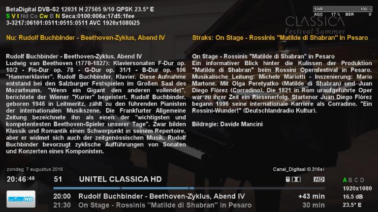 Classica HD geeft af en toe beeld.. Volgens de Second Infobar SIV en Cw.. Maar allen geel..... Kabel Eins Classic geeft in het geheel nada beeld.....
