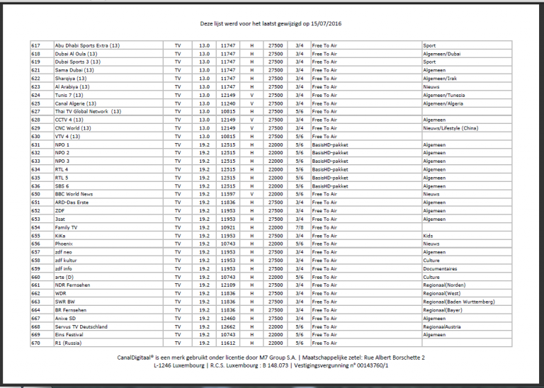 Emekli Geplaatst: 9 augustus 2016 Geplaatst: 9 augustus 2016 Allen bedankt voor de info en medewerking! Ben nu bezig met het opzeggen van CD. Wie kan mij vertellen wat de beste oplossing is om toch nederlandse tv (hopelijk ook fox) in duitsland te ontvangen? Alvast bedankt van Dezember leek Nou zeg jij geeft de moed wel heel snel op. Lees nog eens mijn bericht, je staat sterk genoeg om NL TV te kunnen kijken. En één LNB er bij op zelfde schotel moet gewoon kunnen. Maar ja, ik ben een doorbijter, als ik weet dat ik in mijn recht sta. Zo maar iets verbieden, dat doen veel medebewoners in een appartementen blok of gemeentes, dit omdat ze zelf niet weten hoe iets in elkaar zit. NL TV is misschien nog goed mogelijk in Kleve, niet te ver van de grens, maar belabberde kwaliteit en of FOX in het pakket zit?. Voor goede ontvangst moet er dan weer een buitenantenne geplaatst worden met kabel, geheid dat ze dan ook weer moeilijk gaan doen. Gewoon doorbijten, niks CD opzeggen, vechten tot je wint. Vu+ Uno 4K SE en 1TB HDD / Samsung 65'' UHD Smart TV. Vier schotels, 150, 120, 90 en 120** cm., voor Astra 1 & 3, Hotbird/Eurobird, Türksat, ** is tijdelijk buiten gebruik.