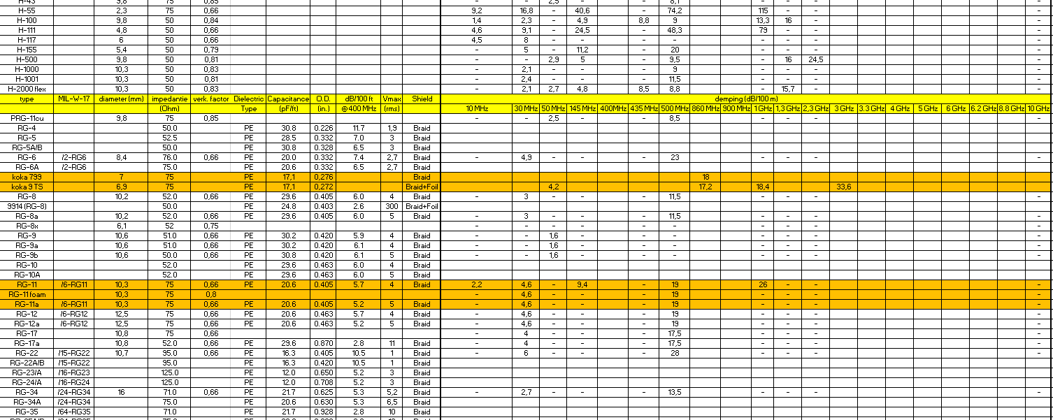 Sprietje:  ik zat meer te denken aan RG11 =  21 Ohm/km   ik vind koka een beetje huis tuin en keuken spul.  ik gebruik het overigens nu wel, maar in Thailand wil ik wat meer pro spul hebben.  maar bedankt voor je bericht