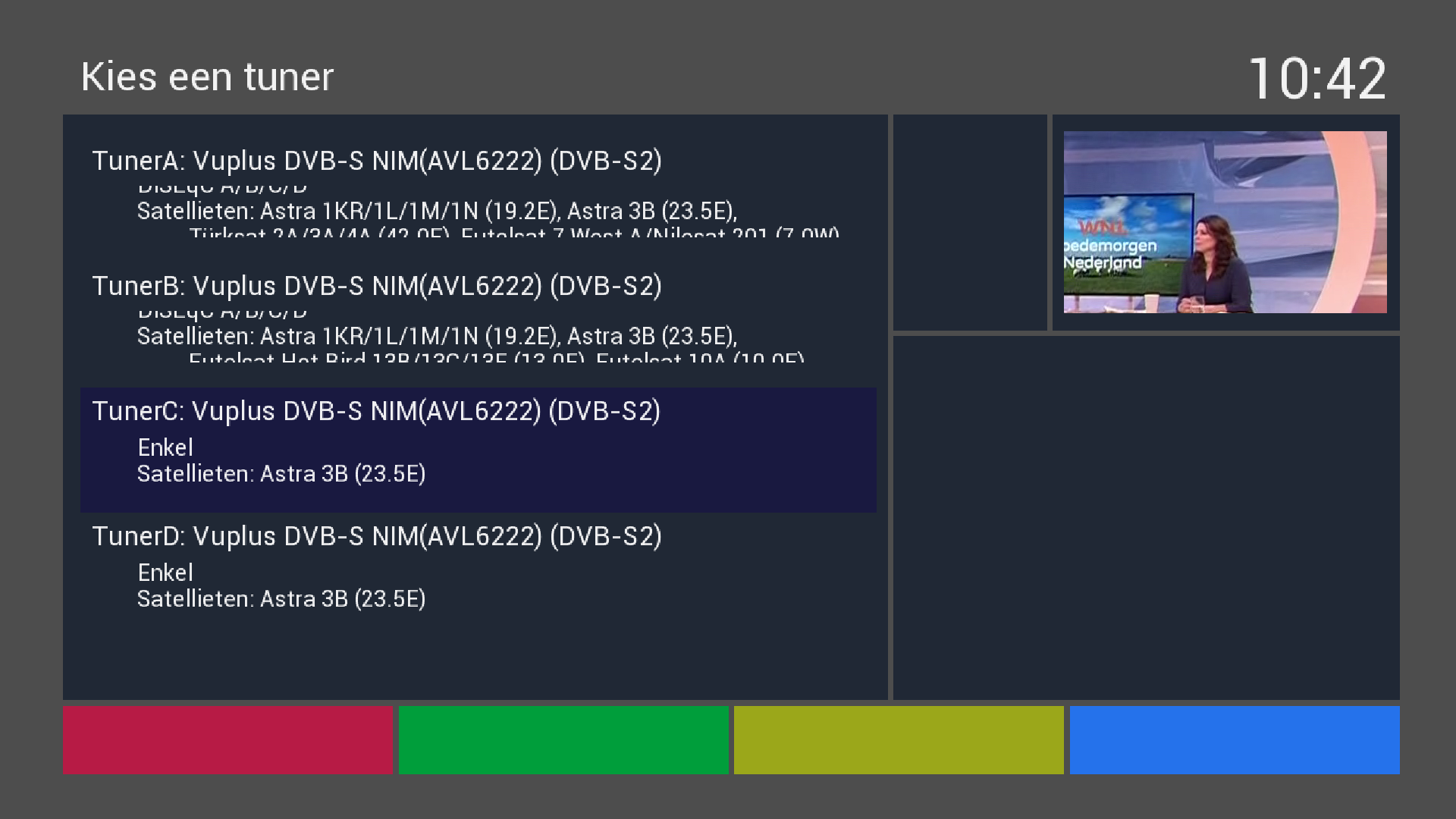 Op dit moment ben ik NPO 1 en 3 aan het opnemen en ARD Das Erste en dan loopt het mis bij ook nog ZDF of iets anders op te nemen.