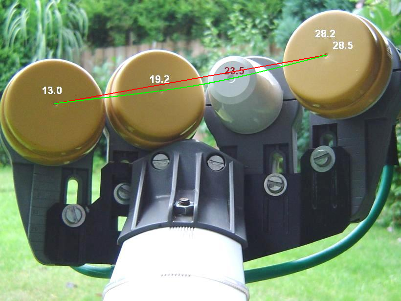 a33 Geplaatst: 17 februari 2017 Geplaatst: 17 februari 2017 Houd rekening met het 'spiegelen' van de signalen door de schotel. Om het 19oost signaal op de 19oost LNB te krijgen (op het plaatje de tweede houder van links) moet de schotel iets naar links gedraaid worden (van achter de schotel gezien). groet, A33 Tip: Als je reageert op een post, geef dan altijd een citaat van de (gehele) post waar je op reageert. Sommige leden kunnen namelijk hun oorspronkelijke posts achteraf nog wijzigen, en wel veel langer dan de sinds jaar en dag in de huisregels (voor alle leden) vermelde periode van 30 minuten. Dat dat inbreuk doet aan de continuïteit van de foruminhoud, en een ongelijk speelveld creëert, wordt kennelijk (helaas) niet belangrijk geacht.