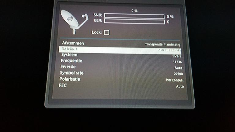 Signaal Astra 3 via het beeldscherm SNR 86% zie foto. Alleen via Signaalfinder is het signaal op het zelfde moment 0%