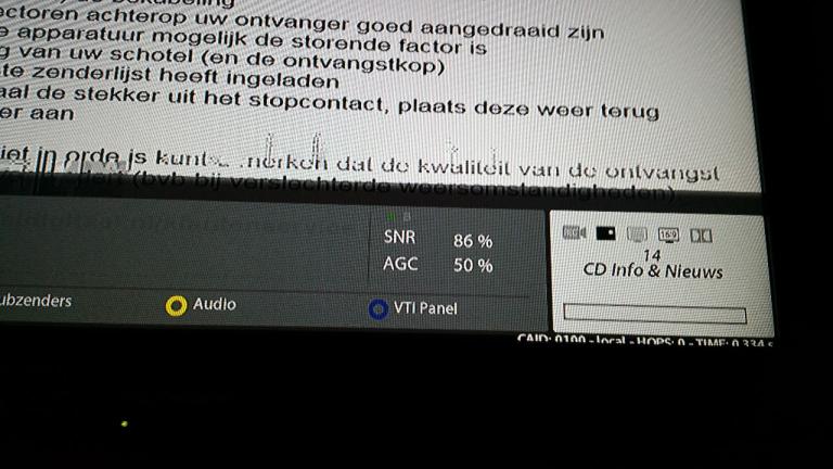 Ik heb de gehele "Vti installatie tutotial" doorlopen, maar het uit eindelijke resultaat blijft het zelfde, een slecht beeld en mopperende vrouw bij alle zenders op de Astra3.  Astra1 geeft wel mooi beeld.