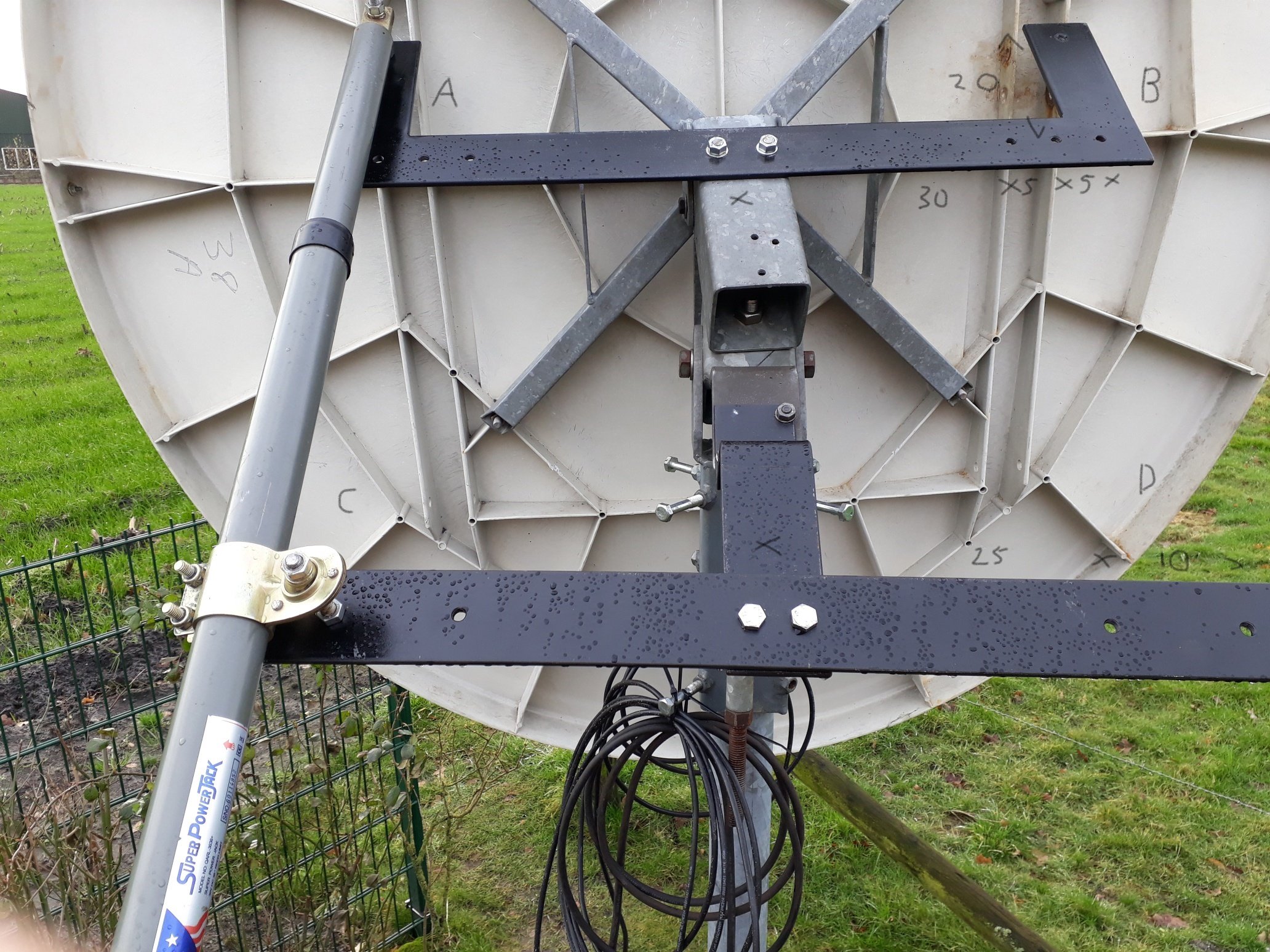 Plepkeshenkie Geplaatst: 28 januari 2018 Geplaatst: 28 januari 2018 Even een update wat betreft de SMC schotel. Op de eerste foto staat de schotel met de bevestiging zoals ik hen heb gekocht maar volgens Rimantss moest ik een ander bevestigings punt maken zodat deze niet rechtstreeks aan de schotel zit. Nu heb ik dit aangepast zie foto,s maar nu de vraag. Hoe kan ik of waar is de beste plek om de actuator 36 inch te plaatsen. Schotel is straks bedoeld voor de c band maar volgens mij moet ik met de 36 inch toch dit zodanig kunnen afstellen dat ik een zo groot mogelijk draaibereik heb. Wat heb ik tot nu toe gedaan. Punt B is het originele aansluitpunt. Actuator vanaf punt C verbonden met B. (geen idee trouwens hoe ik dit aan kan geven met echte letters) maar goed met deze verbinding kan ik vanaf west goed draaien totdat ik in de buurt van de 23,5 positie kom en dan kiepert de schotel over zijn kantel punt heen. Op de foto met de actuator van C naar A gaat het draaien goed tot 30 west en dan wordt de schotel ook onstabiel. Door dat ik hier al een poosje mee bezig ben ben ik even de weg kwijt wat de beste stand is. Heeft iemand een idee hoe het wel zou moeten dan hoor ik het graag want elke keer de motor er af is ook geen pretje. (Zegt mijn vrouw want zij moet de schotel dan vasthouden en een 180 cm is dan zwaar). Als er aanvullende info nodig is dan laat het maar even weten. Andere vraag is er iemand die ervaring heeft met de signaal sterkte van deze schotel. Ik heb nl ook een 180 cm channel master en die geeft naar mijn idee een veel betere signaal kwaliteit door. Voorbeeld met CM op 7 west MBC pakket goed en met SMC niks. Ben benieuwd naar jullie reactie Channel master 180 cm draaibaar 31,5 west tot 76,5 oost met lnb revolver met Circ ku band lnb, 1 keer Ku band lnb, Inverto Ka Ku en lnb voor 26 oost amateur band T90 schotel sat posities 42, 39, 28, 23,5, 19,2 16, 13, 9, 4,8 en 0,8. Unimesh 3,10 m met 2 keer C band lnb Ontvangers Octagon sf8008, Extrend 9500, Edision Mio 4k, Zgemma H9 twin TBS 5927 USB Alles tijdelijk buiten gebruik.i.v.m verhuizing.