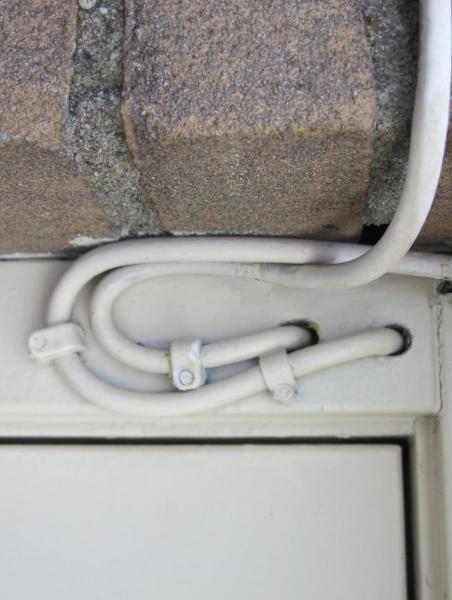 Aan de buitenkant zit in beide kabels ook een lus om te voorkomen dat regenwater