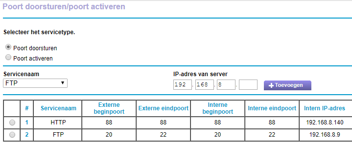 b. de PI heb ik een statisch adres gegeven in de Netgear.