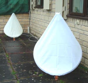 Sprietje Geplaatst: 10 november 2017 Geplaatst: 10 november 2017 In Amerika zijn dat soort zakken gewoon in de handel. Ze heten satellitedish covers. Ze zijn er in vele soorten en maten. Het helpt vooral bij sneeuw omdat de pvc-cuver konstant beweegt door de wind, valt ook de sneeuw er meteen af. Je kunt de schotel ook op zijn kop monteren. Dan komt het zeil veel steiler te staan en glijdt de sneeuw er nog sneller vanaf, zie laatste afbeelding.