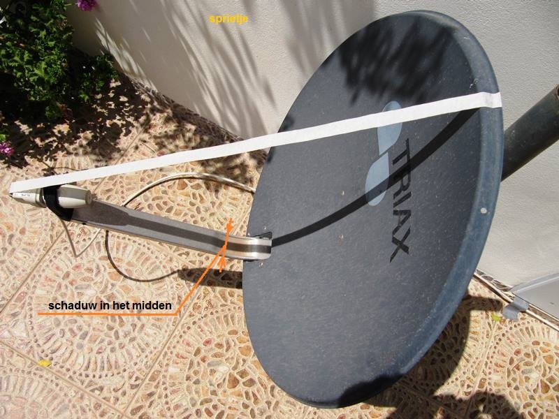 Sprietje Geplaatst: 26 november 2017 Geplaatst: 26 november 2017 Daar zou ik niet op gokken. Ik zou maar een houder meenemen waarvan je zeker weet dat het wel gaat. Dat is de LNB-houder GK2 A024, zie bijlage. Die koop je voor minder dan €10,- Dit is de enige houder waarbij je de koppen van de lnb's tegen elkaar kunt zetten en die dun zijn zodat hij op die korte hals van 33mm van de Inverto Black Premium gemonteerd kan worden. Het enige wat niet mooi is bij het gebruik van slechts 2 lnb's, is dat de rail wat lang is en dan een stuk opzij uitsteekt maar dat kun je oplossen door zelf even een stripje te maken van bijv. aluminium. Maak het dan zo dat de hart op hart afstand van de twee houders 63mm is. In het midden van het stripje maak je een klein knikje zodat de lnb iets naar elkaar toegericht staan. Als je de lnb's dan op die beugel monteert, komen de koppen strak tegen elkaar wat ook de bedoeling is want de afstand van de lnb's moet eigenlijk 55,5mm zijn en door de schuinstand haal je 58,5mm, dus eigenlijk 3mm te groot maar dat maakt voor de Astra 19,2 niets uit want die is toch sterk genoeg. De schotel stel je als volgt af: - monteer de lnb van de Astra 23,5 in de klem van de schotel - Zet de kop 5mm vrij van de lnb-klem - stel de skew van de lnb in op -22° - monteer de multi-lnb houder zodat de vrijhangende lnb rechts komt te hangen als je in de schotel kijkt. - stel de multi-lnb houder 27° schuin zoals ik een paar berichten eerder al heb aangegeven m.b.v. de hoek van 27° - monteer de lnb van de Astra 19,2 in de klem en zorg dat de voorzijde van de lnb's even ver van de schotel af staan - stel de skew van de Astra 19,2-lnb in op -18° Opm: de lnb's moeten beide met de wijzers van de klok worden verdraaid als je naar de binnenzijde van de schotel kijkt t.o.v. verticaal. Gebruik de bijgevoegde hoeken. - stel de elevatie van de schotel in op 39° om de satelliet te vinden - voor het gemak kun je de schotel het beste uitrichten met de zon. Hiervoor moet je tegen die tijd maar even aangeven wanneer je de schotel gaat afstellen want dat verschilt per dag iets. Je doet dat door plakband van precies boven op de schotel te spannen midden over de lnb die in de klem staat, zie bijlage. Gebruik een makkelijk te ontvangen zender van de Astra 23,5 om de schotel op de satelliet te richten. Dit is Ocko op positie 348 van de TV Vlaanderen zenderlijst. Eenmaal de Astra 23,5 gevonden gebruik je gewoon een HD-zender van TV Vlaanderen om de schotel optimaal af te stellen. Als je de schotel afstelt m.b.v. je ontvanger altijd de maximale signaalkwaliteit afstellen, niet de signaalsterkte.
