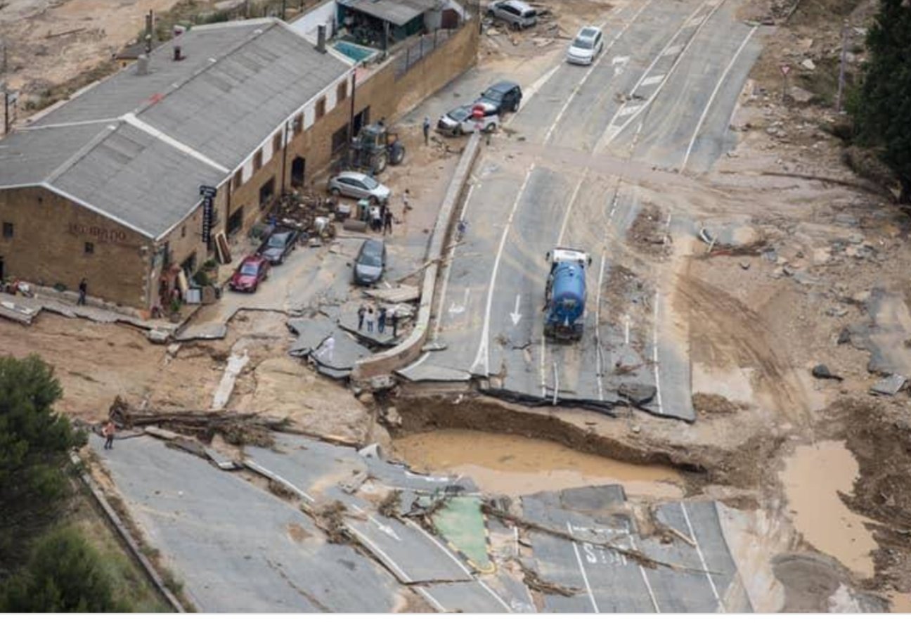 2 maanden geleden viel er ook een buitje in het noorden van Spanje waar we altijd langskomen opweg naar Nederland, even een streeview foto gezocht, en hoe het daarna eruit zag, een foto uit de krant.