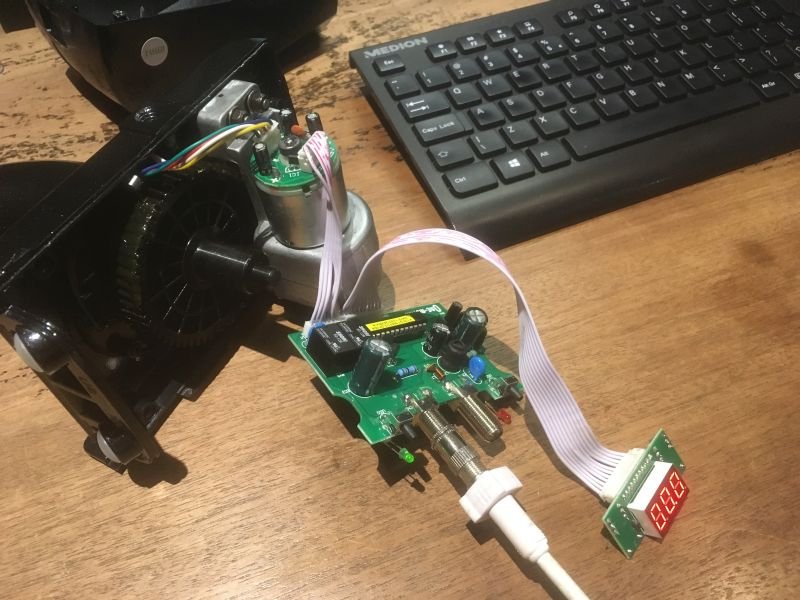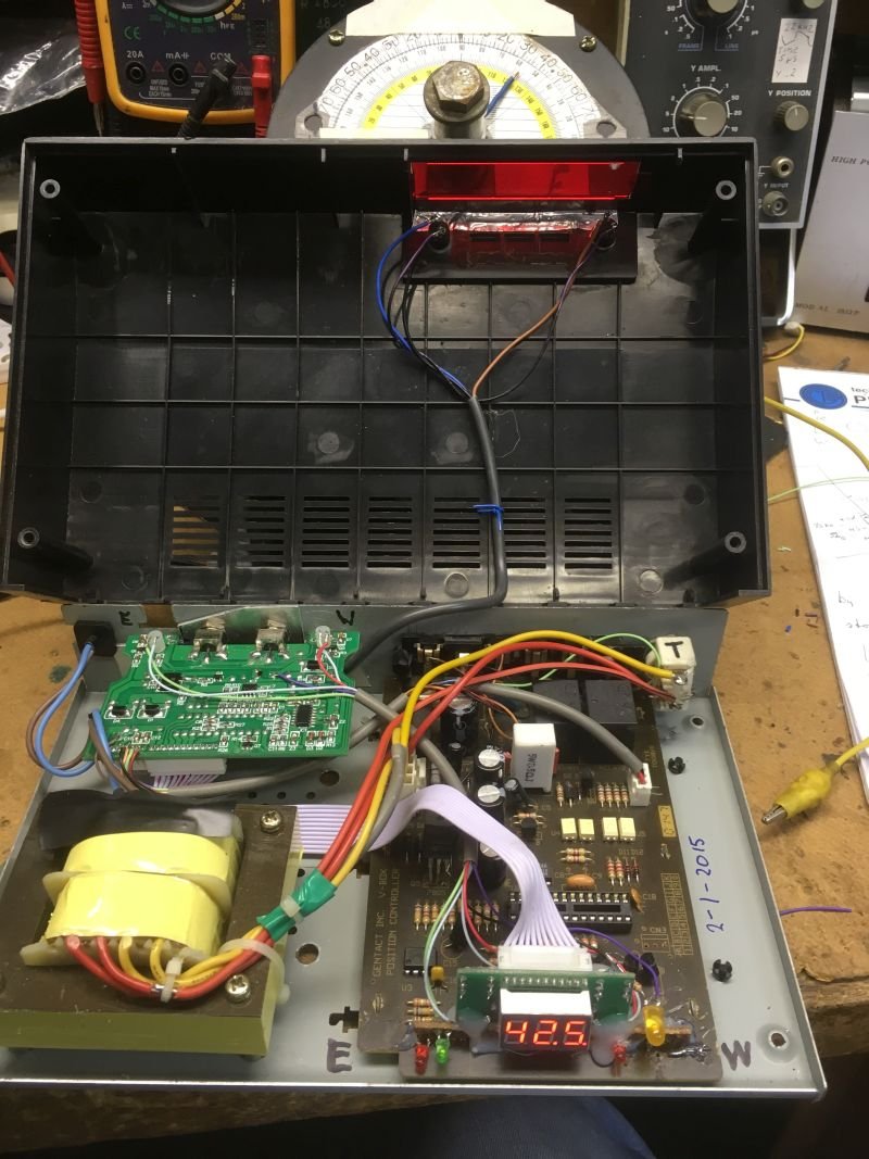 trust Geplaatst: 20 mei 2018 Geplaatst: 20 mei 2018 Ajak heeft meerdere versies gemaakt o.a. H180 , AIMER en een versie zonder wormwiel maar met een drietraps kettingwiel vertraging . Ik zie nu dat jouw type nog zwaarder uitgevoerd is dan die ik heb gehad . T90User heeft zo'n type als de jouwe achter zijn 310 cm C-band schotel zitten , eveneens door mij omgebouwd voor Usals . Toevallig vorige week de stuurkast (SuperJack V-Box) voor de 1.8 CM AJAK veranderd . Destijds de elektronica vervangen door de printplaat van een SG2100 motor , nadeel is dat je niet meer gebruik kon maken van de teller in het display . Een V-Box en veel andere positioners kunnen maar 2000 pulsen aan , genoeg voor systemen waar 6 , 8 of 10 pulsen / gr. worden gegenereerd . Maar een arc van 160 of 170º met 38 p/gr is voor die teller niet te doen . Sinds enkele jaren is er een rotor op de markt , PREMIUM PXM-PLED met een ingebouwde display welke de actuele sat positie zou aangeven . Uit nieuwsgierigheid heb ik er maar een besteld en alvorens open te maken , eerst getest . De aanduiding in de display is niet de sat positie maar hetzelfde als de aanwijzer aan de pijp onder op de motor maar word wel met een nauwkeurigheid van 0.1º aangegeven . Een beetje een tegenvaller maar toch goed werkbaar in de praktijk , na enige tijd weet je dat bij Astra 19.2º , 14.7. hoort ( de laatste punt geeft aan dat het een oostelijke positie is) Uiteindelijk toch maar de elektronica met de display uit die nieuwe motor in de stuurkast gebouwd . Aan de printplaat van deze motor zitten 2 drukknoppen voor handmatig sturen naar Oost en West , deze heb ik in de bovendeksel van de stuurkast gebouwd . Hiermee kun je snel even kijken of er signaal verbetering is te verkrijgen zonder dat je de opgeslagen posities veranderd , tenzij je deze via het motor menu opslaat . Om het helemaal optimaal te maken moet er aan de Ajak ook nog een schakelschijf met schakelaar komen voor het 0-punt . Door met deze nieuwe elektronica het commando "Naar Referentie" te geven , word na het bereiken daarvan , de teller gereset naar 00.0 Het verschil tussen theorie en praktijk is mijn uitdaging . Octagon SF8008 4K Edision Primo IP S2 Dr.HD F16 1.8 m ChannelMaster Offset in tuin 53º E - 45º W Jaeger SMR 1224 Usals met 5 Lnb wisselaar 2x Ka - Ku - C band Lin / Circ 1.2 m Echostar Offset aan schuur 53º E 34.5 W Twoteck Twinrotor met 3 Lnb wisselaar Ku - Ku low - Ka
