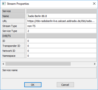 Alex1970 Geplaatst: 6 juni 2018 Geplaatst: 6 juni 2018 -Met Dreamset je VU+ uitlezen. -In het gewenste bouquet de bestaande zender openen (dubbelklikken) of een nieuwe stream aanmaken (rechtermuisknop op de zender waar hij onder moet komen en dan kiezen voor Insert Video/Audio Stream ...) -Daar dit invullen: -OK -Terugschrijven naar de VU+ Werkt zowel op mijn Xtrend ET10000 als de VU+ Zero 4k. Stream was trouwens in een enkele seconde te achterhalen op de website. Dreambox DM920: 2x Triple tuner (2x DVB-S2X multistream + DVB-C/T2) OpenPLi 9 Xtrend ET10000: 1x DVB-S2, 2x DVB-C/T2, IPTV OpenPLi 9 VU+ Duo / Dreambox DM800 / TBS 5925 Channel Master 180cm offset: 39.0°E-37.6°W, Channel Master 120cm offset: 23.5°E-8°W SAB 97 schotel 45.1°E-60°E, 80cm vast: 28.2°E/23.5°E/19.2°E/13°E | DVB-T/DAB: VHFIII/UHF combi-antenne op zolder.