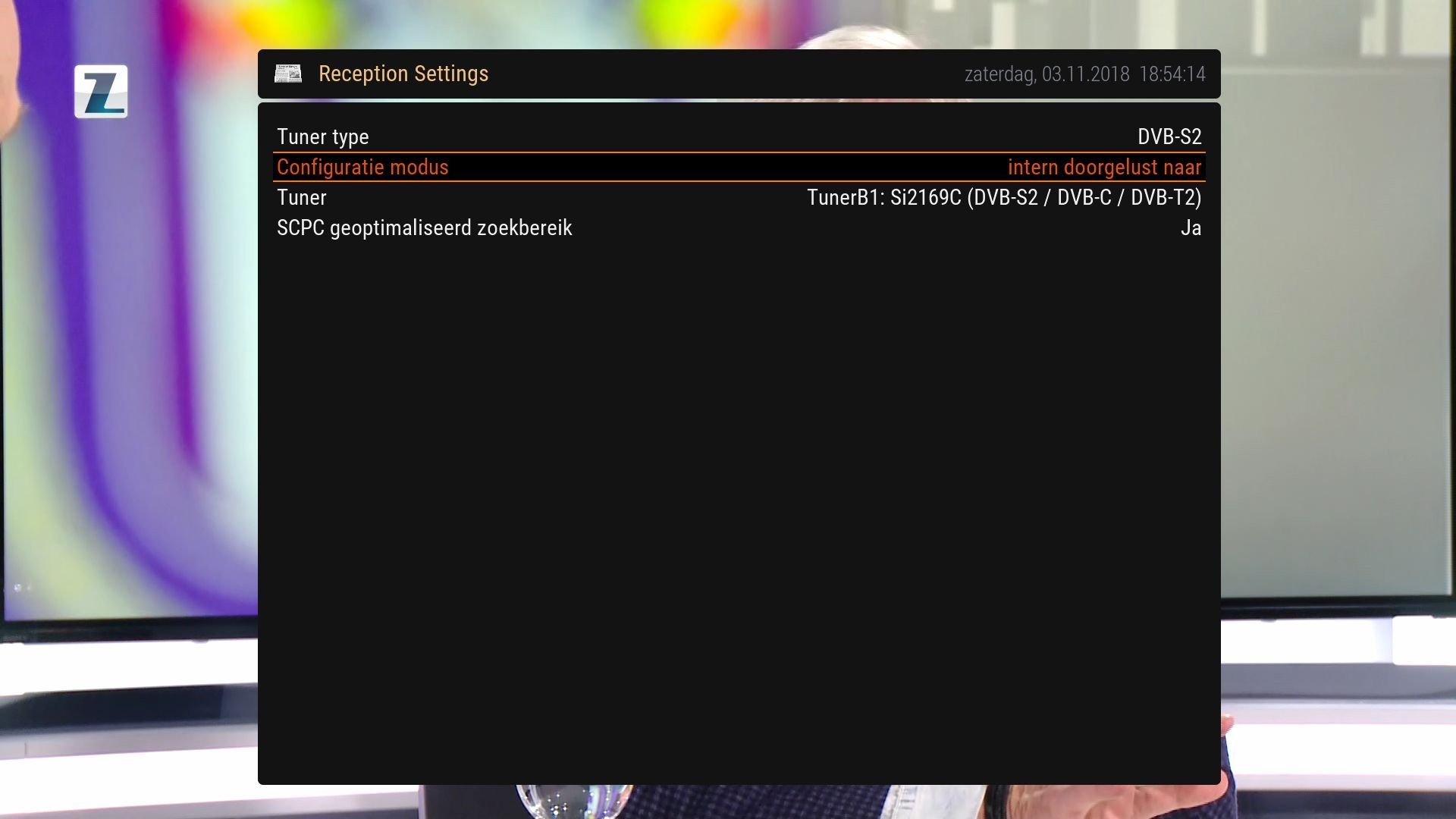 De DVB-S2 tuner kan je bij configuratie instellingen intern doorlussen