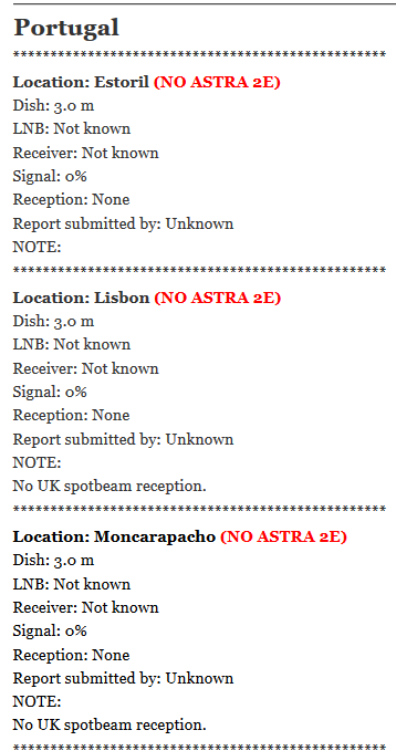 Sprietje Geplaatst: 16 november 2018 Geplaatst: 16 november 2018 (aangepast) Zelfs met een schotel van 3 meter kun je in Portugal de BBC niet op de Astra 28,2 satelliet ontvangen. 16 november 2018 aangepast door Sprietje