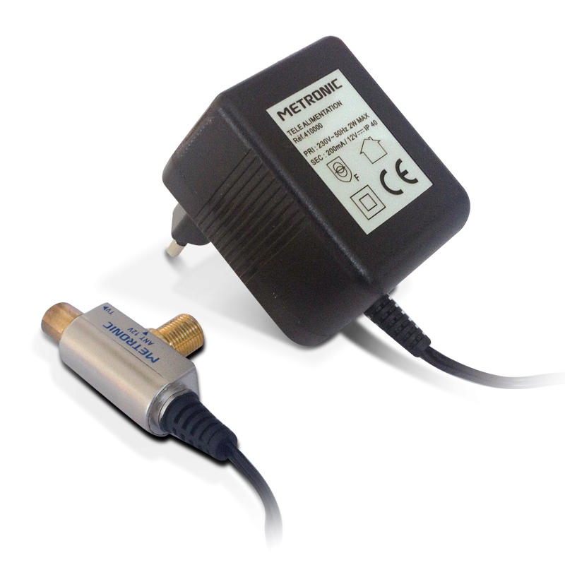 De antennes zijn voorzien van een versterker. Hoe krijgen die hun voeding? Heb je bij elke antenne een voedingsapparaat zitten vóór het koppelfilter?