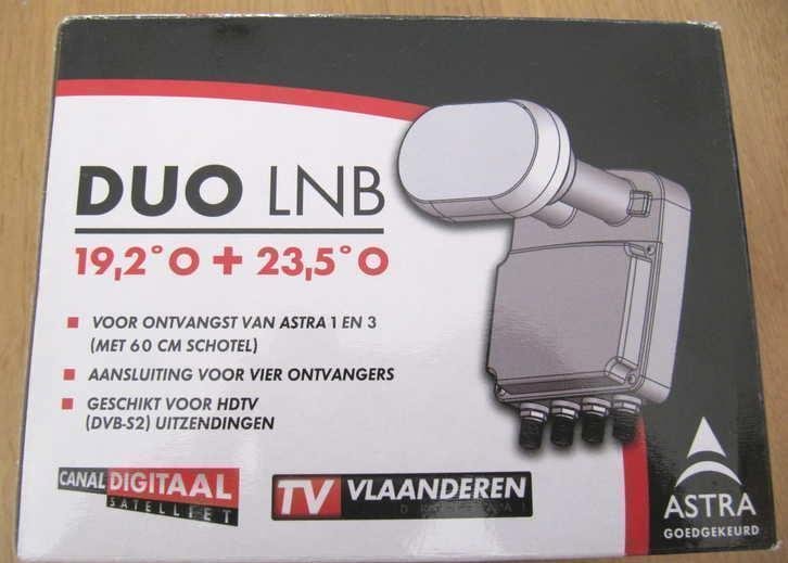 Sprietje Geplaatst: 7 februari 2019 Geplaatst: 7 februari 2019 Beste Penthe Wat bedoel je met een 4:3 monoblock? Een duo-lnb is helemaal niet speciaal voor Nederland en België gemaakt. Het speciale aan een duo-lnb is dat de antennes die er in gemonteerd zitten onder een hoek staan. Dat is nodig omdat de Astra 1-2-3 hun polarisatie niet normaal uitzenden maar 7,5 graden gedraaid. Zouden die antennes recht in de duo-lnb staan, dan staan ze niet hetzelfde als de opgevangen signalen en dit is niet alleen in Nederland en België maar overal waar de Astra's te ontvangen zijn.