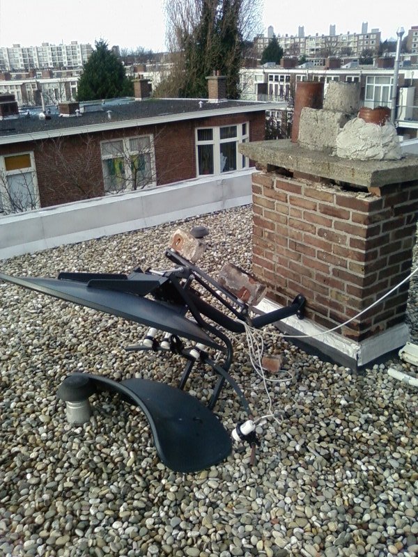 Ataric Geplaatst: 17 juni 2019 Geplaatst: 17 juni 2019 Door de harde wind is mijn t90 vershoven, dit is al de 2de keer in 1 jaar, omdat deze natuurlijk meer wind vangt dan de t55 wil ik die laatste monteren op een andere plek dan de T90... Ik heb het op het dak gezien dat mijn buren hun schoteltje hebben kunnen monteren aan hun schoorsteen, nu wil ik dat ook doen, alleen zie ik wel dat deze iets schuin naar boven loopt (zie bijlage) Vraag is, hoe krijg ik dit recht, natuurlijk kan ik rekening houden met de scew door deze aan te passen, maar liefst zet ik de paal en montage recht en komt daarop de schotel Ik dacht zelf aan een ringetje: Of aan een bout aan de andere binnenkant van de keilbouten die ik zal plaatsen in de schoorsteen, alleen dan hangt de schotel volledig aan de bovenkant met daarop het zwaarste gewicht.. o oude situatie: Ideeën worden gewaardeerd TOROIDAL T90, 1 TB SSD 8 x Inverto Black Pro Octo LNB 8, OpenPLi 7.0 0.8w, 7.0e, 9.0e, 13.0e, 16.0e, 19.2e, 23.5e, 28.2e, 38.0e Mutant HD51 2 x AVL6211, MaxDigital XP1000