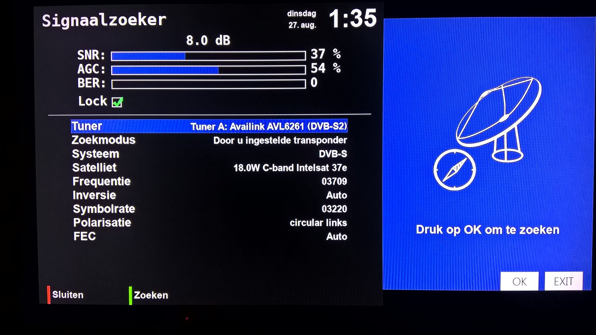 12.110 H, 27.500, 5/6, DVB-S, QPSK.
