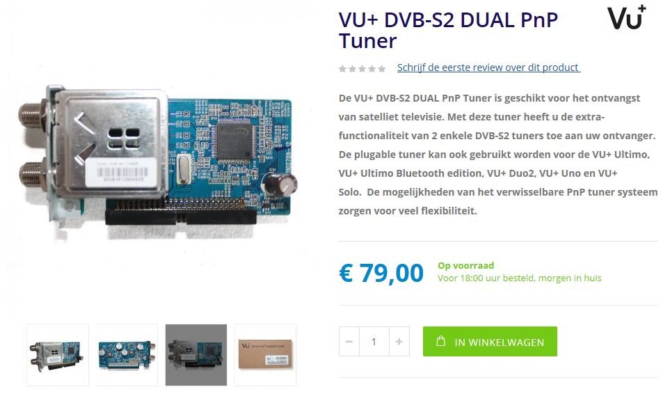 Jürgen Geplaatst: 5 oktober 2020 Geplaatst: 5 oktober 2020 (aangepast) Mocht aan een enkelvoudige VU+ DVB-S2 voldoende hebben, dus geen Dual tuner dan kun je die ook bestellen voor € 49,= Scheelt weer een paar Euri.... Foto en beschrijving afkomstig van één van de dealers.. VU+ losse single DVB-S2 insteektuner voor Ultimo / Uno / DUO2 / Solo SE V2 en SOLO4K 5 oktober 2020 aangepast door Jürgen MacBook Air M2 2022 - iPad Air 2021 - Iphone XR - Apple TV 4 2021