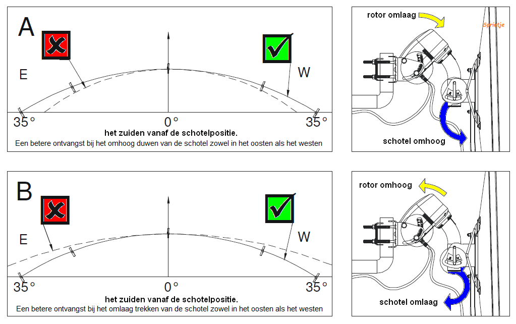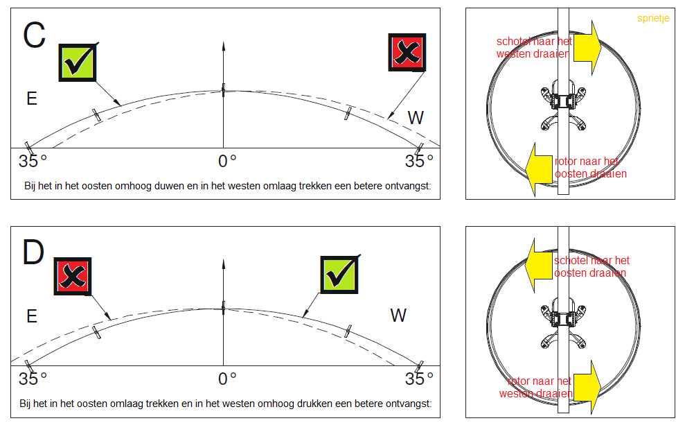 klakke007 Geplaatst: 20 oktober 2020 Auteur Geplaatst: 20 oktober 2020 Geachte, Om je een beeld te geven vd. installatie laat ik je enkele foto's,ik laat je ook een link waar ik me op gebaseerd heb voor het uitrichten vd. schotel, Bij het uitrichten wanneer ik usals uitschakel kan ik de schotel op de juiste positie brengen om zenders van 23,5 te ontvangen,als ik de schotel draai(handmatig met motor)voor 19,2 kan ik ook de zenders ontvangen,wanneer ik echter usals gebruik voor 23,5 of 19,2 veranderd hij zijn positie en staat de schotel ontregeld, ik hoop je hier een antwoord gegeven te hebben voor jouw vragen,tevens wil ik jou bedanken voor je snel antwoord, Roger t ik je hier enkele foto's,laat je ook een link waar ik de insallatie heb gevold,