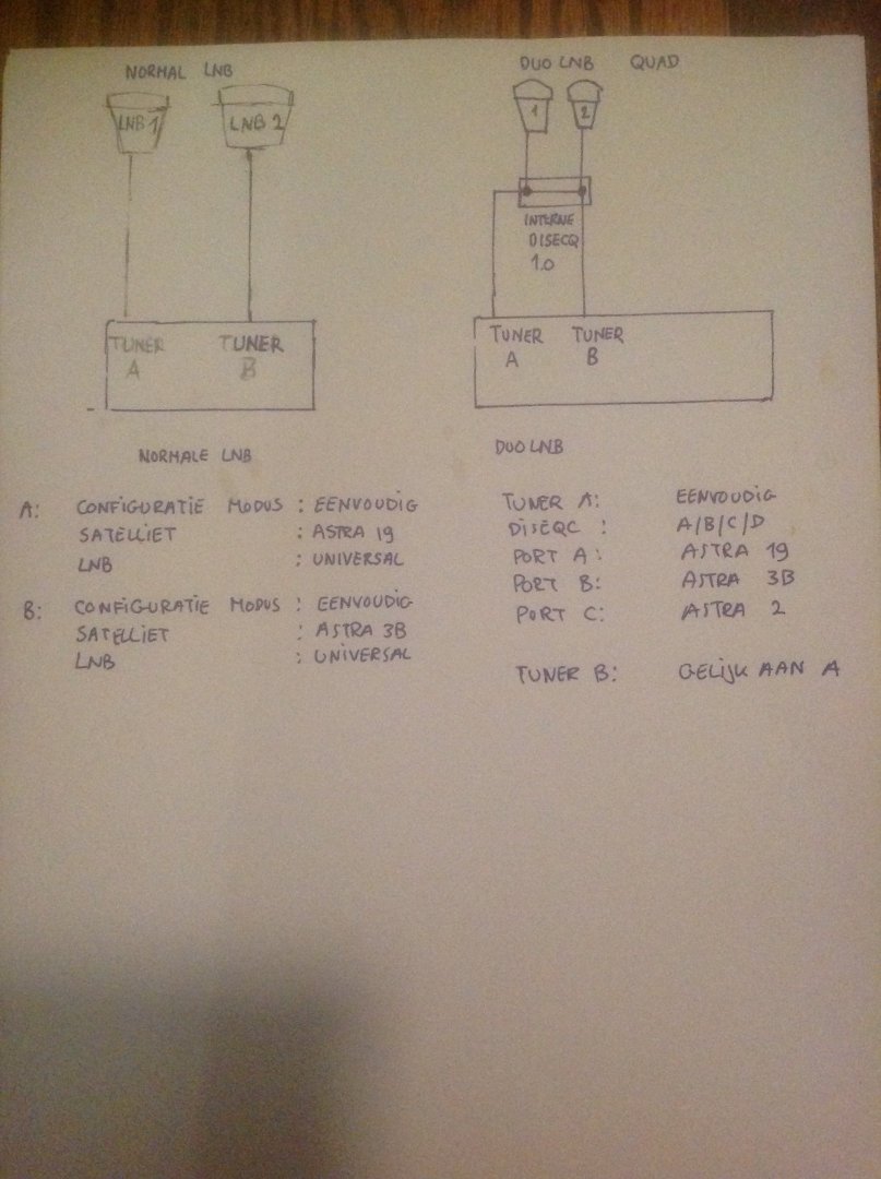 OllieBB Geplaatst: 29 oktober 2020 Auteur Geplaatst: 29 oktober 2020 Toch nog even voor de zekerheid met betrekking tot de FBC tuners; 1. Ik heb een Triple Quad LNB op het dak met de switches geintegreerd. dus die kijkt naar Astra 1,2,3 en heeft vier uitgangen. 2. Met 1 FBC tuner kan ik volgens mij, (met mijn Tripple Quad LNB), maar 1 Sateliet tegelijkertijd ontvangen. (maar wel totaal 8 kanalen op deze sateliet) 3. Dus met 2 FBC tuners kan ik op twee satelieten tegelijkertijd kijken, en op iedere sateliet 8 kanalen tegelijkertijd klopt dit??