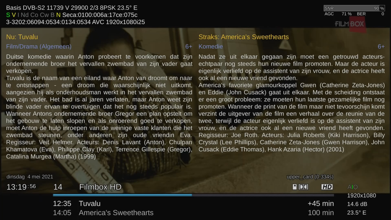 Mimisiku Geplaatst: 4 mei 2021 Geplaatst: 4 mei 2021 Droom lekker verder! FilmBox komt regelrecht van SkyLink (M7), net als FightBox. Nederlandse EPG en ondertiteling is het enige wat ze moeten toevoegen.. Afscheid….. Nog een paar maandjes te gaan…
