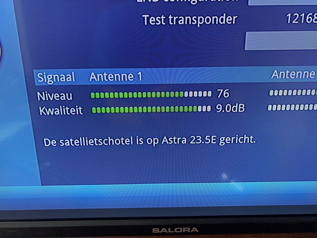 Michel-nl Geplaatst: 11 mei 2021 Auteur Geplaatst: 11 mei 2021 8 uren geleden, Sprietje zei: Je hebt de duo-lnb met de kop van de 19,2 in de klem staan. Als je dan de schotel op de 19,2 uitricht, heb je de 23,5 nooit optimaal, zeker niet als de duo-lnb niet bij de maat van de schotel past. Als je zeker weet dat je geen interesse hebt in de Astra 19,2, neem dan een Inverto Black Ultra single, zie bijlage. Die presteert beter dan welke duo-lnb ook. De zenderlijst van Canal Digitaal is zowel van de Astra 19,2 als van de Astra 23,5 te downloaden. Er is dus geen noodzaak om ook de Astra 19,2 te ontvangen. Kijk even in de handleiding of je ontvanger de fastscanlijst ook via de Astra 23,5 kan inladen. Welke ontvanger heb je? Vind je het toch wel prettig om zowel de Astra 23,5 als de Astra 19,2 te ontvangen, dan kun je het beste deze duo-lnb nemen: https://www.inverto.tv/lnb/100/single-monoblock-23mm-lnb-40-for-80cm-dish Zoals ik al aangaf had ik de schotel(65cm) uit gericht op de 23.5 en ja ik had inmiddels al gelezen dat hij verkeerd erin zat. Zo had ik hem overgenomen helaas De astra 19.2 is voor ons niet van belang. De tuner die ik gebruik is een Technisat digit iso s2 Ik ga vanavond even een proef set-up doen met de lnb met de 23.5 in de houder gemonteerd op de 80cm schotel en testen. Wat voor mij dan puur nog belangrijk is, is of deze lnb het een beetje uit houdt met slecht weer. De inverto had ik inmiddels gezien als 1 van de betere losse lnb's