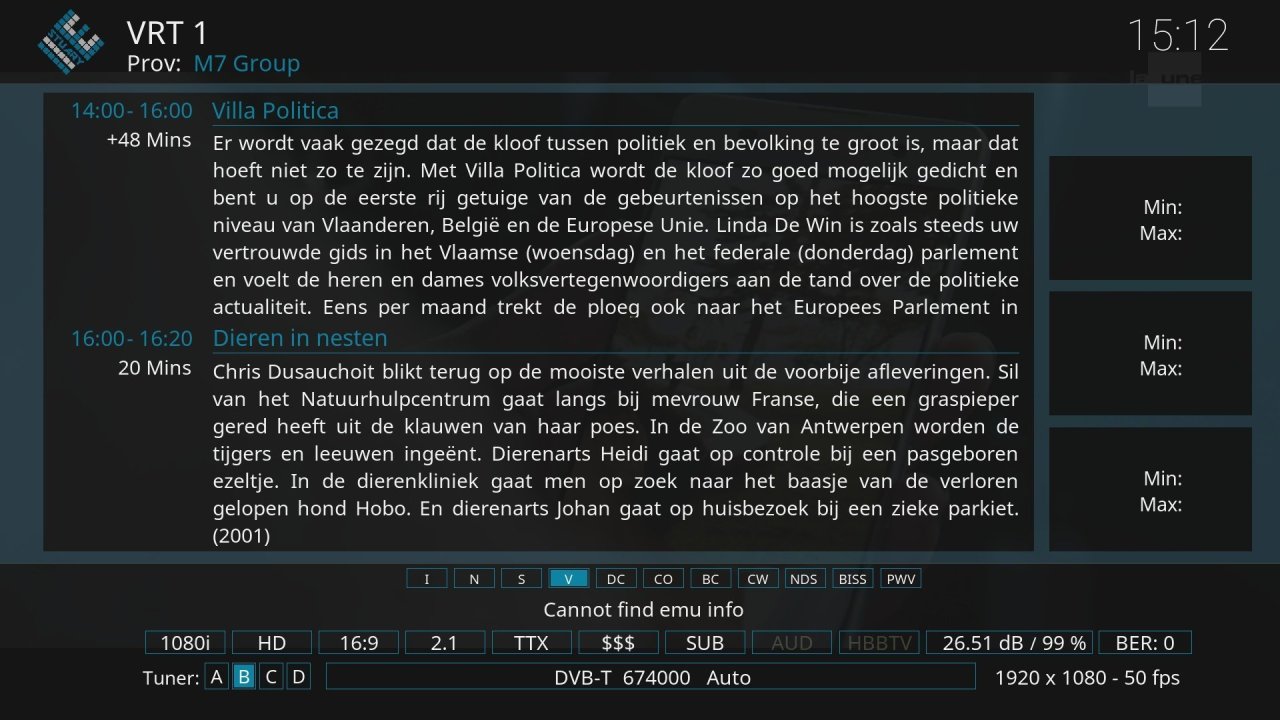 Crazy Sat Geplaatst: 4 oktober 2023 Geplaatst: 4 oktober 2023 Waarom geeft een Edision OS mio 4K dan wel HD (1920x1080) aan op alle zenders van het pakket ? Ik heb geen module en kaart , dus geen beeld maar kan wel de gegevens uitlezen. feedhunting , a crazy hobby ! Edison OS mio 4K UHD + Octagon SF8008 4K UHD + Dr.HD F15 + Edison OS mini + Technomate TM-5402 HD M3 CI , Moteck SG2100 + Deltastar 90 cm + Invacom C120 QDF-031 Quad lnb + SkyStar HD2,TBS5927 , en TT-budget S2-1600 kaart. Channel Master 180 cm schotel + ESX241 lnb voor C-band. DVB-T2 via Oostvleteren,Egem,Mont des Cats,Bouvigny en Doornik.